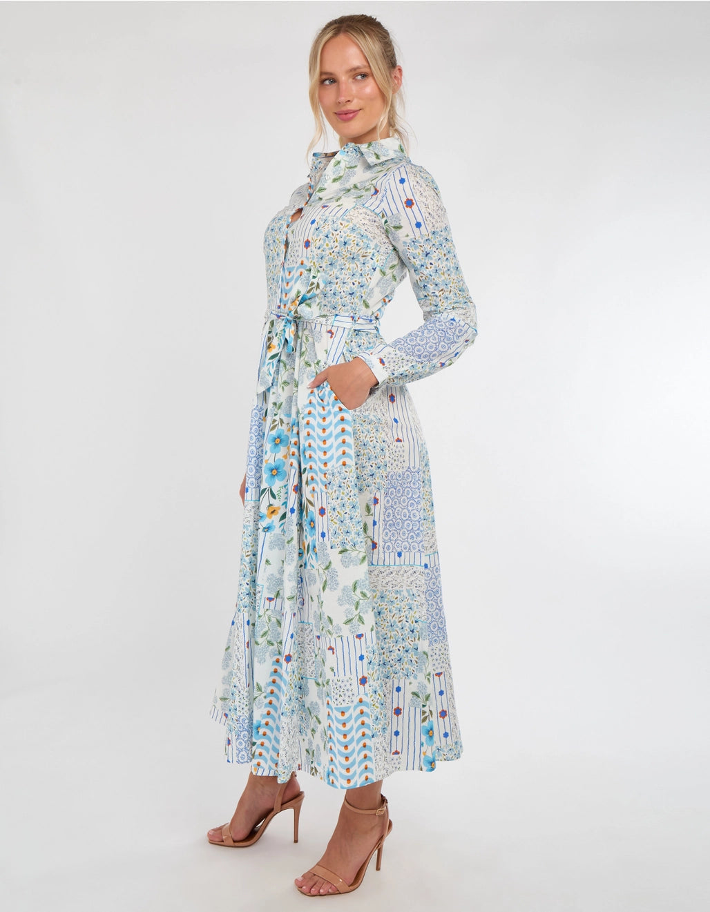 Blue Floral Dress with Pockets
